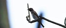 Like other flycatchers, its feeding technique is to perch on an exposed branch and wait. When an insect flies past, the bird dashes out to snatch it.