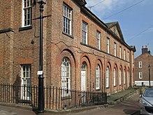 - 1797 - Brick Row. This a brick-built terrace of 3-storey houses. The attic space above the houses in the centre of the row was deliberately planned as a school, replacing a room in Long Mill (across the river). It was used until the construction of St Matthew's School in 1819. The party walls in Brick Row were capable of adjustment to cope with differing sizes of worker families.