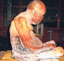 Born in the countryside of Buryatia, Itigilov's parents left him at an early age, forcing him to pursue sheep-herding to make ends meet. When he was 15, Itigilov joined the Anninsky Monastery, where he learned to read Tibetan and Sanskrit, enabling him to read Buddhist texts and serve in the Buddhist community. After becoming the religious leader of Russian Buddhists, Itigilov raised money to provide food, clothing, and medical care to World War I soldiers, among other philanthropic acts. In 1927, he died, passing away in a Lotus position. After he was buried in a pine box, Itigilov was exhumed in 1957, showing a remarkably intact body. After a change of clothes, a reburial, and a second exhumation in 1973, it was finally decided in 2002 that Itigilov would remain above ground permanently. The surprising preservation of Itigilov's corpse has been a subject of confusion among scientists.[1]