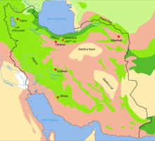 Dasht-e Kavir (Persian: دشت كوير‎, lit. 'Low Plains' in classical Persian, from khwar (low), and dasht (plain, flatland), also known as Kavir-e Namak (lit. 'salty lowlands') and the Great Salt Desert, is a large desert lying in the middle of the Iranian Plateau. It is about 800-kilometre-long (500 mi) by 320-kilometre-wide (200 mi) with a total surface area of about 77,600 km2 (30,000 sq mi), making it the world's 24th largest desert.[1] The area of this desert stretches from the Alborz mountain range in the north-west to the Dasht-e Lut in the south-east. It is partitioned among the Iranian provinces of Khorasan, Semnan, Tehran, Isfahan and Yazd.