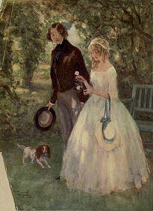 In 1847, Jane Eyre, Charlotte Brontë's first-person narrative, was acclaimed as soon as it was published. Unlike Thackeray, who adored it, Dickens claims years later never to have read it.[22] True or false, he had encountered Elizabeth Gaskell's Mary Barton a novel that called for understanding and sympathy in a class-eaten society.[23] Thackeray's Pendennis was serialised at the same time as David Copperfield and it depicts its hero's personal and social journey from the countryside to the city. A rivalry existed between the two writers, though it preoccupied Thackeray more than Dickens. The most direct literary influence is "obviously Carlyle" who, in a lecture given in 1840, the year of his meeting with Dickens, on "On Heroes, Hero-Worship" and "the Heroic in History", claims that the most important modern character is "the hero as a man of letters".[24][25][20] This is David's destiny, through experience, perseverance and seriousness.[24]