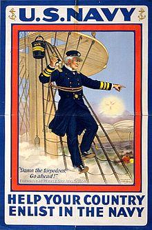 David Glasgow Farragut /ˈfærəɡət/ (also spelled Glascoe;[1][2][3][4] July 5, 1801 – August 14, 1870) was a flag officer of the United States Navy during the American Civil War. He was the first rear admiral, vice admiral, and admiral in the United States Navy.[5][6] He is remembered for his order at the Battle of Mobile Bay (in which he was victorious) usually paraphrased as "Damn the torpedoes, full speed ahead" in U.S. Navy tradition.[7][8]