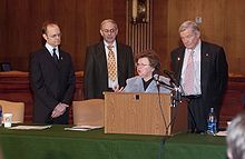 Pierce has spent years working with the Alzheimer's Association on behalf of Americans with Alzheimer's disease. He has appeared in Washington, D.C., to testify in support of expanding funding for treatment, and he publicly campaigned for the National Alzheimer's Project Act. Pierce told MSNBC in 2011, "it is up to us, to all of us, to the American people and to their representatives about whether we face the challenges and make all the effort necessary or if we ignore it and just let this sort of tidal wave crash over us."[25]