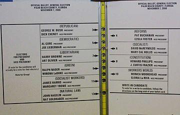 After the 2000 election, the Palm Beach Post speculated that the vast majority of the 2,908 voters who had voided their votes by punching the names of both McReynolds and Democratic candidate Al Gore on a "confusing butterfly ballot" (and also of the over 3,000 more who punched both Gore and Buchanan) had meant to vote for Gore and that mistaken voting on the Palm Beach County butterfly ballot had consequently cost Gore the state's crucial electoral votes, and therefore the election as a whole.[20]