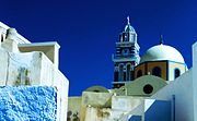 Daytime sky can be darkened to simulate night. With black and white film, a red lens filter will turn a blue sky black. Infrared film is occasionally used for long shots, but it renders green foliage as white. Yellow or orange filters (Wratten 8 or 15) can be substituted for closer shots, to preserve the performers' flesh tones. With color film or video, a graduated neutral-density filter can achieve a similar effect, as can a polarizing filter. Using either of these filters can limit camera movement during a shot, as the axis of a graduated filter must match the horizon, and the effect of the polarizing filter changes as the axis of the camera lens moves relative to the sun.[6] If the scene is backlit by the sun for a "moonlight" rim light effect, faces and other foreground details may be too dark to see properly. Partially filling shadows with reflectors or a 5000K (daylight-balanced) key light can compensate for this.[6][1] Even so, shadow areas are still slightly under-lit, to match the higher contrast of the overall scene.