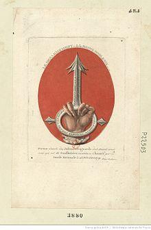 The conflict on 28 February, later deemed the Day of Daggers, humiliated the monarchists who had come to the Tuileries to defend the King. The specific actions of Lafayette the day after reaffirmed the rumor that the nobles had planned to take away the King, thus creating the legend of the conspiracy of the "chevaliers du poignard".[12] The chevaliers du poignard was used in propaganda images from the Constitutionalists. One particular cartoon entitled "The Disarmament of Good Nobility" by the engraver Villeneuve showed the "exact form" of the infamous daggers used: a deformed dagger with inscriptions claiming that the blade was forged by aristocrats and that the monarchists had been led astray by the priests.[13]