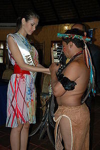 Dayana Sabrina Mendoza Moncada (born June 1, 1986) is a Venezuelan actress, model, film producer and director. She is also a former beauty queen, winner of the titles of Miss Venezuela 2007 and Miss Universe 2008, she is also the holder of a Guinness Record after the victory in 2009 of the also Venezuelan Stefanía Fernández, being the first and only time that a nation has won the Miss Universe competition consecutively.[2]
