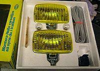 DRL power consumption varies widely depending on the implementation. Current production DRL systems consume from 5[9] watts (dedicated LED system) to over 200 W (headlamps and all parking, tail, and marker lights on). International regulators, primarily in Europe, are working to balance the potential safety benefit offered by DRL with the increased fuel consumption due to their use. Because the power to run the DRLs must be produced by the engine, which in turn requires burning additional fuel, high-power DRL systems increase CO2 emissions sufficiently to affect a country's compliance with the Kyoto protocol on greenhouse gas emissions.[10] For that reason, low-power solutions are being encouraged[11] and headlamp-based systems are not allowed after DRLs became mandatory in Europe at the beginning of 2011. LEDs and low-power, high-efficacy, long-life light bulbs produce appropriate amounts of light for an effective DRL without significantly increasing fuel consumption or emissions. Fuel consumption reductions of up to 0.5 mpg may be found when comparing a 55 W DRL system to a 200 W DRL system.[12] In 2006, the UK's Department of Transport also found significant reductions in emissions and fuel consumption when comparing a 42 W DRL system to a 160 W full headlight DRL systems.[13] DRL fuel consumption can be reduced to insignificant levels by the use of 8 to 20 W DRL systems based on LEDs or high-efficacy filament bulbs.