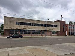 Dayton Metro Library is a multi-branch library system serving 458,677 residents of the Dayton Metropolitan Area. It has 19 locations across the area (as well as two bookmobiles). Almost 5.8 million items were borrowed in 2018.[4] The Dayton Metro Library ranks in the top ten best libraries in the United States serving a population of over 250,000 by HAPLR.[5] The Dayton Metro Library system is considered a county system with branches in cities and towns throughout Montgomery County, Ohio, but does not have branches in Centerville, Germantown, Oakwood, Riverside or Washington Township. All are serviced by libraries of their own, save Riverside, various parts of which are geographically close to Dayton Metro Library locations, including Burkhardt, Electra C. Doren and Huber Heights.[6][7][8]