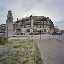 With the Dutch squatters movement regularly in the news for events such as the Vondelstraat eviction resistance and the Amsterdam coronation riots, De Blauwe Aanslag was occupied in 1980.[1] The owner, the Dutch state, tried to evict the squatters by turning off the electricity but eventually sold the building to the Hague council. At first, the council was more conciliatory in approach and in 1986 agreed with the squatters that the building should be protected. However, by the mid1990s, the council had decided that the building needed to be demolished in order to widen the road at its front, the Buitenom.[2]