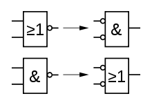 In electrical and computer engineering, De Morgan's laws are commonly written as: