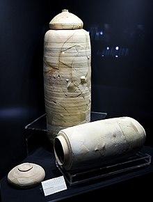The Dead Sea Scrolls were discovered in a series of twelve caves around the site originally known as the "Ein Feshkha Caves" near the Dead Sea in the West Bank (then part of Jordan) between 1946 and 1956 by Bedouin shepherds and a team of archeologists.[14] The practice of storing worn-out sacred manuscripts in earthenware vessels buried in the earth or within caves is related to the ancient Jewish custom of Genizah.