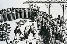 If the headsman's axe or sword was sharp and his aim was precise, decapitation was quick and was presumed to be a relatively painless form of death. If the instrument was blunt or the executioner was clumsy, multiple strokes might be required to sever the head, resulting in a prolonged and more painful death. The person to be executed was therefore advised to give a gold coin to the headsman to ensure that he did his job with care. Robert Devereux, 2nd Earl of Essex,[11] and Mary, Queen of Scots[12] required three strikes at their respective executions. The same could be said for the execution of Johann Friedrich Struensee, favorite of the Danish queen Caroline Matilda of Great Britain. Margaret Pole, 8th Countess of Salisbury, is said to have required up to 10 strokes before decapitation was achieved.[13] This particular story may, however, be apocryphal (since highly divergent accounts exist). Historian and philosopher David Hume, for example, relates the following about her death:[14]