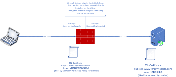 - The Firewall Product can read all information exchanged between SSL-Client and SSL-Server (targetwebsite.com)