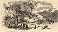Seven hundred and six members of the Black Brigade of Cincinnati built fortifications in Kentucky to protect Cincinnati from attack by Confederate soldiers.[8] They had no weapons and only had a few cavalry scouts between them and Confederate troops.[9][10][11] The brigade worked until September 20, when there was no longer a threat to Cincinnati.[12] When they were done, hundreds of acres of forests had been cleared and miles of rifle pits were dug. They had built forts, magazines, and miles of military roads[11] and breastworks along the border with Northern Kentucky between Fort Thomas and Bromley. The fortifications were built far enough away from Cincinnati that they could not shell the city.[8]
