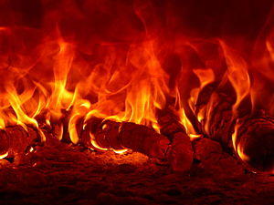 where is the activation barrier for the burning reaction and is the temperature developed as the result of burning; the value of this so-called "flame temperature" can be determined from the laws of thermodynamics.