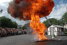Adding water to a burning hydrocarbon such as oil or wax produces a boilover, where water boils rapidly and ejects the material as a fine spray of droplets. A deflagration then occurs as the droplets ignite and burn extremely rapidly. These are particularly common in chip pan fires, which are responsible for one in five household fires in Britain.[1]