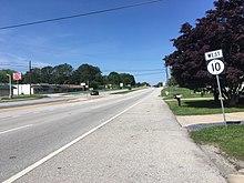 The Lebanon Road portion of the route between US 13 and US 113 was completely widened into a divided highway by 1981.[14] In 1993, the DE 1 freeway was completed in the area of the eastern terminus, with an interchange to that road built that incorporated ramps to both DE 10 and the existing US 113, which merged with DE 1 at this point.[15][16] The US 113 designation was removed from the area in 2004, leaving DE 10 terminating only with DE 1.[17][18] On June 5, 2017, construction began for a roundabout at the junction with DE 15 west of Camden in order to improve safety at the intersection. The roundabout was completed by September 2017.[19]