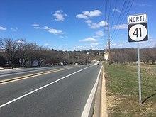 Delaware Route 41 (DE 41) is a highway in northwestern New Castle County, Delaware. Its southern terminus is at DE 2 and DE 62 in Prices Corner. From DE 2, the road passes through suburban areas along Newport Gap Pike, intersecting DE 48 in Hockessin. Its northern terminus is the Pennsylvania state line just north of Hockessin, and it continues on as Pennsylvania Route 41 (PA 41) to Gap.