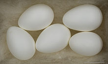 The common house martin tends to breed colonially, and nests may be built in contact with each other. A colony size of less than 10 nests is typical, but there are records of colonies with thousands of nests. Four or five white eggs are usually laid, which average 1.9 cm × 1.33 cm (0.75 in × 0.52 in) in size, and weigh 1.7 g (0.060 oz). The female does most of the incubation, which normally lasts 14–16 days. The newly hatched chicks are altricial, and after a further 22–32 days, depending on weather, the chicks leave the nest. The fledged young stay with, and are fed by, the parents for about a week after leaving the nest. Occasionally, first-year birds from the first brood will assist in feeding the second brood.[9]