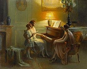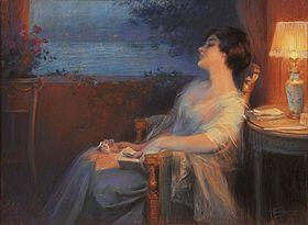 Delphin Enjolras (1857 Coucouron –1945 Toulouse) was a French academic painter. Enjolras painted portraits, nudes, interiors, and used mostly watercolours, oil and pastels. He is best known for his intimate portraits of young women performing mundane activities such as reading or sewing, often illuminated by lamplight. Perhaps his most famous work is the "Young Woman Reading by a Window."