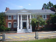 At the turn of the century the fraternity's growth plateaued due, in part, to opposition from a group of chapters to what was seen as the lessening of the fraternity's standards through colonization.[14] In 1898, Delta Upsilon joined the recent trend of fraternity expansion into Canada by chartering a chapter at McGill University in Montreal. However, most expansion in this period came in the form of the annexation of established local fraternities. Zeta Chi at Baker University was one local which unsuccessfully petitioned for annexation by Delta Upsilon.[22] In 1909, Charles Evans Hughes led the incorporation of the fraternity.[14]