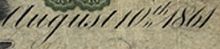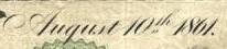 - "Washington" and the date "August 10, 1861" printed in a cursive font (the date, however, was written uniquely per denomination)[5]