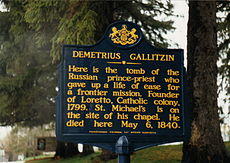 - ^ Balliet, Kathleen E., "Gallitzin, Father Demetrius Augustine", Pennsylvania State University, Fall 2005 Archived 2013-05-15 at the Wayback Machine