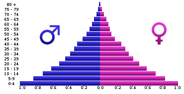 Another characteristic of Stage Two of the demographic transition is a change in the age structure of the population. In Stage One, the majority of deaths are concentrated in the first 5–10 years of life. Therefore, more than anything else, the decline in death rates in Stage Two entails the increasing survival of children and a growing population. Hence, the age structure of the population becomes increasingly youthful and start to have big families and more of these children enter the reproductive cycle of their lives while maintaining the high fertility rates of their parents. The bottom of the "age pyramid" widens first where children, teenagers and infants are here, accelerating population growth rate. The age structure of such a population is illustrated by using an example from the Third World today.