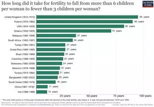 Countries that have experienced a fertility decline of 25–50% include: Guatemala, Tajikistan, Egypt and Zimbabwe.