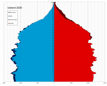 This article is about the demographic features of the population of Iceland, including population density, ethnicity, education level, health of the populace, economic status, religious affiliations and other aspects of the population.