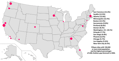 - ^ Gary J. Gates "Same-sex Couples and the Gay, Lesbian, Bisexual Population: New Estimates from the American Community Survey" (PDF). (2.07 MB). The Williams Institute on Sexual Orientation Law and Public Policy, UCLA School of Law, October 2006. Retrieved August 4, 2015.