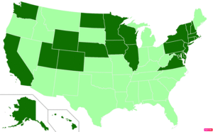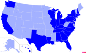 | Official | No official language at national level. English is designated official in 32 of 50 states (and the 5 U.S. territories). Hawaiian is official in Hawaii, 20 native languages are official in Alaska, and Sioux is official in South Dakota.[5] Samoan is an official language in American Samoa,[6] Chamorro is an official language in Guam,[7] Chamorro and Carolinian are official languages in the Northern Mariana Islands,[8] and Spanish is an official language in Puerto Rico.[9] |