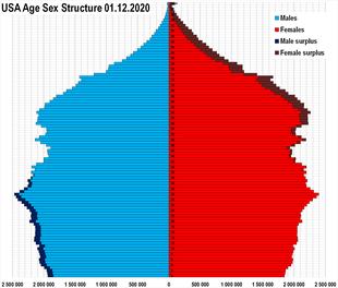 | 55–64 | 20,357,880 | 21,821,976 | 42,179,856 | 12.91% | 48.26% | 51.74% | 0.93 |