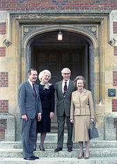 In February 1949, at a Paint Trades Federation function in Dartford, he met Margaret Hilda Roberts, a chemist and newly selected parliamentary candidate. When she met Denis for the first time she described him as "not a very attractive creature" and "very reserved but quite nice".[11] They married on 13 December 1951, at Wesley's Chapel in City Road, London: the Robertses were Methodists. Margaret Thatcher was elected Leader of the Conservative Party in 1975 and won the 1979 general election to become the first female Prime Minister in British history. Denis Thatcher became the first husband of a British prime minister.[12]