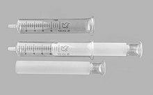 Sectors in the syringe and needle market include disposable and safety syringes, injection pens, needleless injectors, insulin pumps, and specialty needles.[3] Hypodermic syringes are used with hypodermic needles to inject liquid or gases into body tissues, or to remove from the body. Injecting of air into a blood vessel is hazardous, as it may cause an air embolism; preventing embolisms by removing air from the syringe is one of the reasons for the familiar image of holding a hypodermic syringe pointing upward, tapping it, and expelling a small amount of liquid before an injection into the bloodstream.