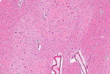 The dentate nucleus is a cluster of neurons, or nerve cells, in the central nervous system that has a dentate – tooth-like or serrated – edge. It is located within the deep white matter of each cerebellar hemisphere, and it is the largest single structure linking the cerebellum to the rest of the brain.[1] It is the largest and most lateral, or farthest from the midline, of the four pairs of deep cerebellar nuclei, the others being the globose and emboliform nuclei, which together are referred to as the interposed nucleus, and the fastigial nucleus. The dentate nucleus is responsible for the planning, initiation and control of voluntary movements. The dorsal region of the dentate nucleus contains output channels involved in motor function, which is the movement of skeletal muscle, while the ventral region contains output channels involved in nonmotor function, such as conscious thought and visuospatial function.