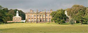 Denton Hall is an English country house located to the north of the River Wharfe, at Denton, Borough of Harrogate, North Yorkshire, England between Otley and Ilkley, and set within a larger Denton estate of about 2,500 acres (10 km2), including a village, church, and landscaped gardens.[1] It is a Grade I listed building.[2]