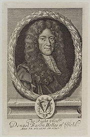 He did so on the grounds Charles had no right to require such measures, since they were 'contrary to law' and his demands for restrictions on the monarchy were resented by the court.[35] Now characterised by Charles as a "stiff and sullen man," he was dismissed from the Privy Council in 1676, then restored at the height of the 1679 Exclusion Crisis. In the dispute over whether the Catholic Duke of York should be allowed to succeed his brother, Holles backed Halifax, who was willing to do so but with strict limitations, rather than Shaftesbury, who wanted him removed from the succession entirely.[36] However, in the last years of his life he lost his former influence, and in the opinion of one biographer had become "a man out of his time."[37]