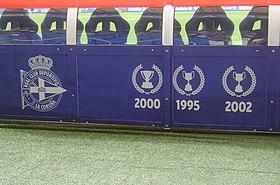 Founded in 1906, Deportivo have won the league title once, in the 1999–2000 season, and finished as runner-up on five occasions.[6] The club have also won the Spanish Cup twice (1994–95 and 2001–02) and has also won three Spanish Super Cups. The Blue-and-Whites were a regular in top positions in La Liga for some 20 years, from 1991 to 2010, finishing in the top half of the table in 16 out of 19 seasons, and are 12th on the all time La Liga table.[7] As a result, the club was a regular participant in European competitions, playing in the UEFA Champions League five seasons in a row, reaching the quarterfinals twice and reaching the semi-finals in 2003–04.