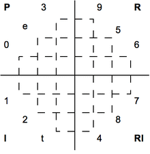 P represents the original trichord, RI, retrograde and inversion, R retrograde, and I inversion.
