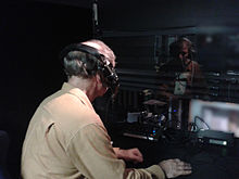 In live theaters, patrons also receive the description via a wireless device, a discreet monaural receiver. However, the description is provided live by describers located in a booth acoustically insulated from the audience, but from where they have a good view of the performance. They make their description which is fed to a small radio transmitter.[35]