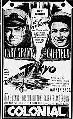 Destination Tokyo is a 1943 black and white American submarine war film.[3] The film was directed by Delmer Daves in his directorial debut,[4] and the screenplay was written by Daves and Albert Maltz, based on an original story by former submariner Steve Fisher.[5] The film stars Cary Grant and John Garfield and features Dane Clark, Robert Hutton, and Warner Anderson, along with John Ridgely, Alan Hale Sr. and William Prince.