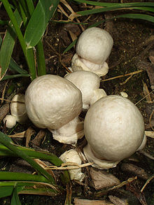 The name destroying angel applies to several similar, closely related species of deadly all-white mushrooms in the genus Amanita.[1] They are Amanita bisporigera and A. ocreata in eastern and western North America, and A. virosa in Europe.[1] Another very similar species, A. verna or fool's mushroom was first described in France.[citation needed]