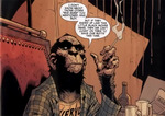 Detective Chimp plays a key role in the opening issues of Year Three. John Constantine tracks down 'the world's greatest detective' - normally the moniker applied to Batman - to assist in defeating a fascistic Superman. At first, Chimp drunkenly curses Constantine, but then agrees to join him as he and Batman appear in the back of Chas Chandler's cab, where he and John mock the brooding detectives. Constantine then leads him and Batman to a church where he has magically sealed Raven, much to Chimp's surprise. Chimp then asks John why he is involved in this war between Batman and Superman, but Constantine explains how the conflict with the Green Lantern Corps killed his daughter Rose's mother and he wants revenge on Superman. Batman then gathers his allies, including Chimp, at Jason Blood's home, where Batman and Constantine try to explain their plan. Detective Harvey Bullock, though, announces that he plans on leaving, feeling that he is out of his element in this world of superheroes, but Chimp stops him and reveals that he knows his reputation as a detective and his work with Commissioner Gordon in the past on several cases. Chimp then admits he feels outside his own comfort zone but he is still here for the same reason that Gordon is and asks him to stay. Before Bullock can answer, Klarion the Witch Boy's cat, Teekl, senses something coming as Jason realizes his home's protective seal was broken when Bullock opened the door. Before Bullock can close the door, the Spectre vaporizes both Bullock and Blood, with Chimp getting caught in the blast. Alfred Pennyworth, though, manages to save Chimp as he, Zatanna, and Harley Quinn, manage to keep him alive, where Alfred carries his body while Zatanna teleports the others to the Tower of Fate. Chimp then awakens and grasps Harley's hand as she, Alfred, and Zatanna try to keep him alive, where it is revealed that Chimp is missing an eye. Doctor Fate then appears to take Constantine's daughter, Rose, away. Harley, though, demands Fate to help him save Chimp, but Fate says he cannot help him. Harley Quinn and Klarion the Witch Boy save Chimp's life, but Chimp loses the use of one eye and has to wear an eye patch. When Sinestro later kills Klarion, Chimp tells the assembled group that, without Klarion, he will cease to exist and fades away in front of Harley and the other rebels.