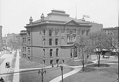 A stand-alone public library in Detroit dates back to 1865.[4] An 1842 state law requiring the Detroit Board of Education to open a library resulted in a public reading room opening on March 25, 1865 in the old Capitol High School at State and Griswold Street. In 1872, the Centre Park Library opened across the street from the current location of the Skillman Branch in downtown Detroit at Gratiot and Library Street. The first branch library opened in 1897 when the Detroit Water Commission library was opened to the public; in 1905 this library was turned over to the Detroit Library Commission.