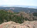 View from the top of the Devil's Head Lookout. Pike National Forest is in the foreground, while the city of Denver is in the distance.