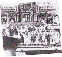 The Nawabs of Dhaka were Persian and Urdu-speaking[1][2][3] aristocrats tracing their ancestry to Kashmiri merchants who arrived in Mughal Bengal during the reign of emperor Muhammad Shah to pursue trade, but eventually settled in the districts of Dhaka, Sylhet and Bakerganj.[4][5][6][7][3][8] They engaged in the purchase and sale of various local commodities. Maulvi Khawaja Abdullah Kashmiri, who moved from Delhi amidst the late Mughal era, is recorded as the first patriarch of the family in Bengal. Having established a successful business in Sylhet, he invited his father and brother from Kashmir, colloquially known as "Iran-e Saghir" (Minor Iran).[9][4][6] Later, the family settled in Dhaka.[4]