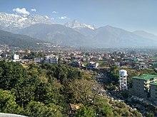 Dharamshala is a municipal corporation city in the upper reaches of the Kangra Valley and is surrounded by dense coniferous forest consisting mainly of stately Deodar cedar trees.[3] The suburbs include McLeod Ganj, Bhagsunag, Dharamkot, Naddi, Forsyth Ganj, Kotwali Bazar (the main market), Kaccheri Adda (government offices such as the court, police, post, etc.), Dari, Ramnagar, Sidhpur, and Sidhbari (where the Karmapa is based). This place is also famous for its Himachal Pradesh Cricket Association Stadium (2003), which offers opportunities to the youth of state to prepare for their future in the game. The McLeod Ganj town, lying in the upper reaches, is known worldwide for the presence of the Dalai Lama.[5] On 29 April 1959, the 14th Dalai Lama (Tenzin Gyatso) established the Tibetan exile administration in the north Indian hill station of Mussoorie.[6] In May 1960, the Central Tibetan Administration (CTA) was moved to Dharamshala, making it the centre of the Tibetan exile world in India. Following the 1959 Tibetan uprising there was an influx of Tibetan refugees who followed the 14th Dalai Lama. His presence and the Tibetan population have made Dharamshala a destination for Indian and foreign tourists, including students studying Tibet.