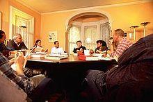 In the United States, an early form of dialogic learning emerged in the Great Books movement of the early to mid-20th century, which emphasized egalitarian dialogues in small classes as a way of understanding the foundational texts of the Western canon.[27] Institutions that continue to follow a version of this model include the Great Books Foundation, Shimer College in Chicago,[28] and St. John's College in Annapolis and Santa Fe.[29]